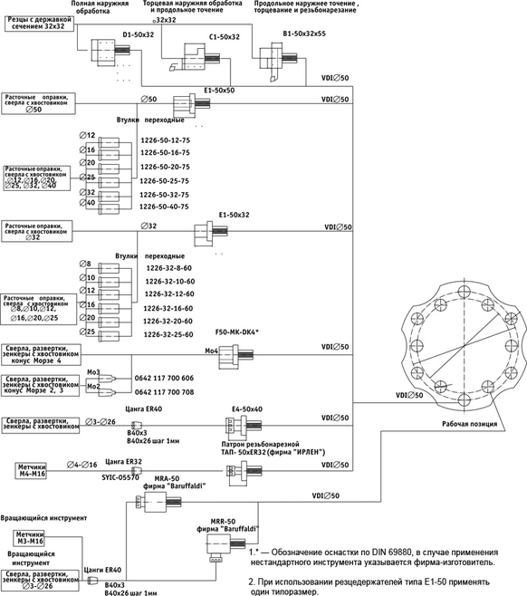 Схема размещения вспомогательного инструмента в 12-позиционной револьверной головке для станков САТ630