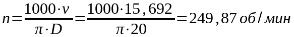 Ближайшая стандартная частота по паспорту станка nст=250об/мин, ввиду этого скорректируем значение скорости: