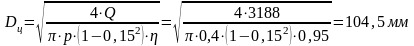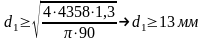 потрібний внутрішній діаметр різі визначаємо з виразу: