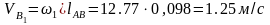 Швидкість точки В1 складається з переносної швидкості, яка дорівнює швидкості точки В3 та відносної швидкості, яка дорівнює швидкості точки В2 відносно точки В3.