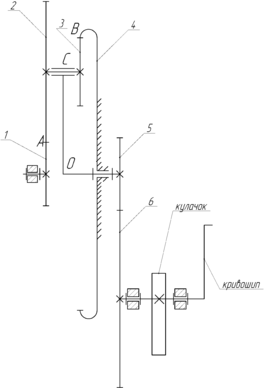 Схема механізму привода конвеєра, який буде досліджуватися у цьому пункті, зображено на рис.6. Цей механізм складається з наступних частин: