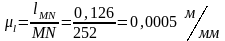 на діаграмі лінійних швидкостей з урахуванням масштабного коефіцієнта швидкості: