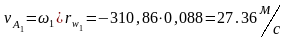 Обчислюємо швидкість крапки А, що належить початкової окружності колеса 1 по формулі