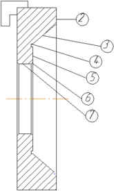 | 055 Внутрішньошліфувальн 1. Шліфувати отвір 7 попередньо. 2. Шліфувати отвір 7 кінцево | Внутрішньо шліфувальний верстат мод. 3А240 | |