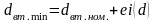 - граничне верхнє відхилення внутрішнього діаметра деталі, мм;