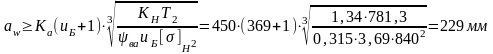 где Ka = 450 – коэффициент межосевого расстояния для косозубых колёс;