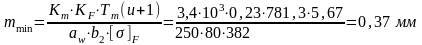 KF = KFV . KFβ . KFα=1,09 . 0,188 . 1,18 =0,24– коэффициент нагрузки;