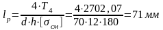 где h = 12 мм – высота шпонки; d = 70 мм – диаметр вала; [σсм] = 180 Н/мм2 – допускаемые напряжения смятия для стальной ступицы.