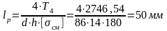 где h = 14 мм – высота шпонки; d = 86 мм – диаметр вала; [σсм] = 180 Н/мм2 – допускаемые напряжения смятия для стальной ступицы.