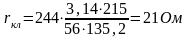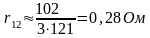 - сопротивление участка замыкающего кольца, заключённого между двумя соседними стержнями, Ом: