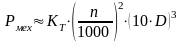 - в двигателях с радиальной системой вентиляции без радиальных вентиляционных каналов, с короткозамкнутым ротором и вентиляционными лопатками на замыкающих кольцах, Вт: