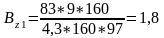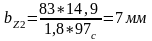 Допустимая ширина зубца, мм (определяется по допустимой индукции BZ2, Тл, таблица 9 приложения):