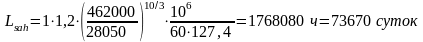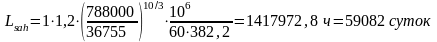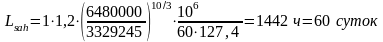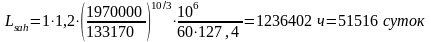 Определяем скорректированный по уровню надежности и условиям применения расчетный ресурс подшипника, ч: