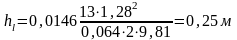 Расчёт сопротивления участка напорного трубопровода от теплообменника до колонны: