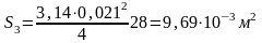 Площадь поперечного сечения 28-и труб одного хода теплообменника: