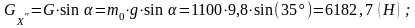 Как видно из рисунка проекции силы G можно рассчитать по выражениям: