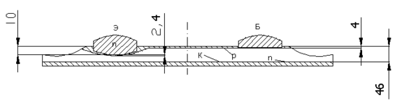 Вторая капля сплава содержит только р-примеси. Она создает омический контакт с соединительным слоем и вывод базовой области. В случае проплавления р-слоя эта капля создает p-n-переход с исходным кремнием.