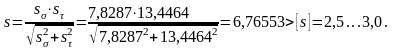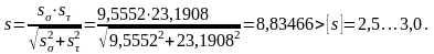 Определяем коэффициент запаса прочности по касательным напряжениям: