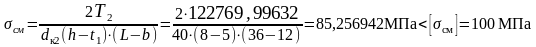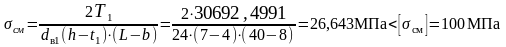Шпоночные соединения проверяем на смятие. Материал шпонки: Сталь 45 нормализованная. допускаемое напряжение при стальной ступице: