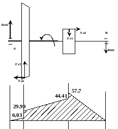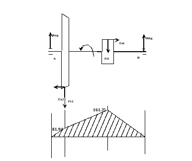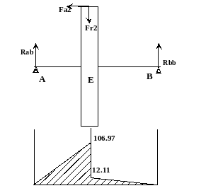 Rbb=(Fa1 dm1/2 – Fr1l1)/l2 =(96.5 * 27.5 – 352.42 * 45.7)/99.5 =-135.19