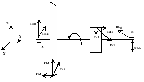 – Fa2*d1/2 – Fr2*(l2+l3)+Fr1*l3 – Fa1*d2/2 – Rab*(l1+l2+l3)=0;