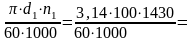 V1 – скорость ремня, равная окружной скорости малого шкива.