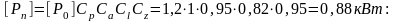 - допускаемая приведенная мощность, выбирается в зависимости от типа ремня, его сечения,