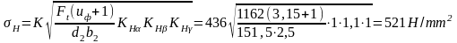 = 1 - коэффициент, учитывающий распределение нагрузки между зубьями;
