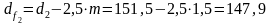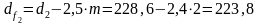 Диаметры окружностей впадин зубьев шестерни и колеса