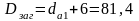 Диаметры окружностей вершин зубьев шестерни и колеса