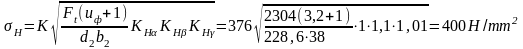 = 1,1 - коэффициент, учитывающий распределение нагрузки между зубьями;