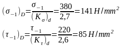 Определить пределы выносливости в расчетном сечении.