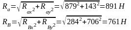 Определяем суммарные радиальные реакции