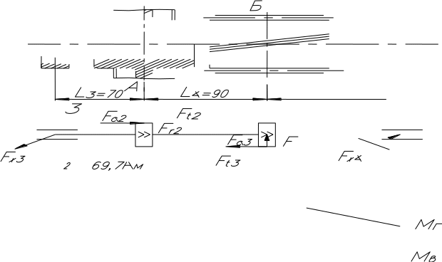 Рисунок 3 – Расчетная схема ведомого вала тихоходной ступени