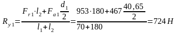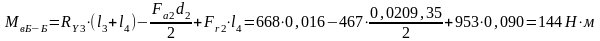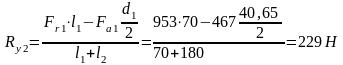 - радиальная сила ведомого вала быстроходной ступени.