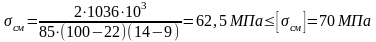 Допускаемое напряжение смятия при стальной ступицы