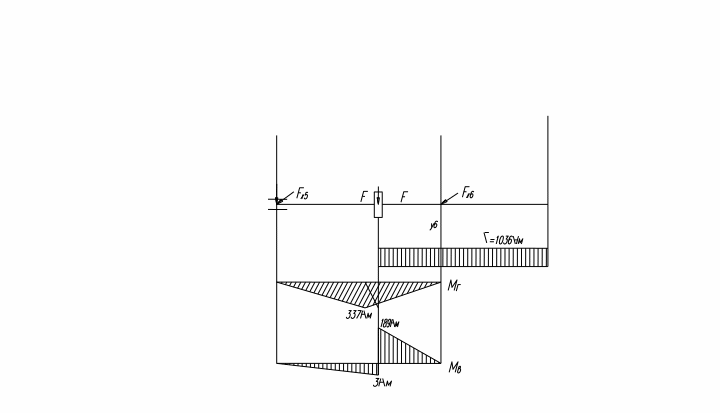 Построим эпюры крутящих и изгибающих моментов в вертикальной плоскости: