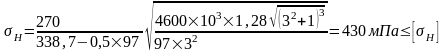 для колес з круговим зубом розрахункове допустиме контактне напруження: