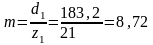 В конічних колесах не обов’язково мати стандартне значення mte. Це пов’язане з технологією нарізання зубів конічних колес.