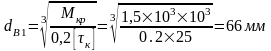 Діаметр вихідного кінця при допускаємо му напруженні [τк] = 25мПа