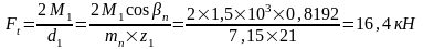 Радіальна сила для шестерні дорівнює осьовій для колеса: