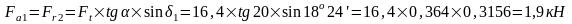 Ра2 = S1 + Fа = 7,89 + 1,9 = 9,79 кН