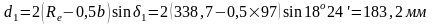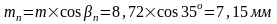 тут: βn = 35º - прийнятий середній кут нахилу зуба