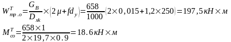 де: μ = 0,015 - коефіцієнт тертя в підшипниках