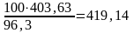 где 147,87 – объём воды, который необходимо прибавить к 100 дал спирта при крепости исходного спирта 96,3% об, дал.