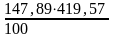 где 147,89 – объём воды, который необходимо прибавить к 100 дал спирта при крепости исходного спирта 96,2% об, дал.
