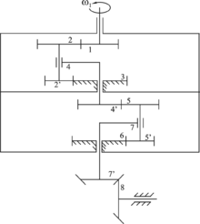 Передаточное отношение второго планетарного механизма Давида определяем от колеса 4’ до водила 7.