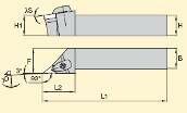 | Рис. 6 | Чертежный номер державки: PDJNL 32325 P15 Тип пластины: DNMG 150612 MN KC9125 Длина режущей кромки пластины: 11 Главный угол в плане: kr=93° Угол пластины: 55° Количество граней: 4 Радиус при вершине: 1,2 мм Стойкость грани: 30′ Инструментальный блок: B5 11.6032/25 |