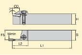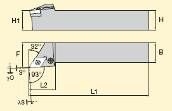| Рис. 8 | Чертежный номер державки: A4SML2525M0520 Тип пластины: A4G0500M05P04GMP Длина режущей кромки пластины: 11 мм Ширина пластины: 1 мм Количество граней: 2 Радиус при вершинах: 0,2 мм Стойкость грани: 30′ Инструментальный блок: B5 11.6032/25 |