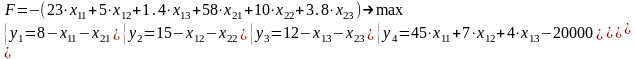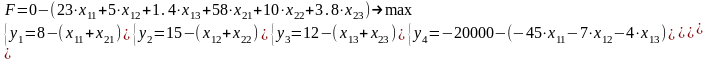 А1=8, А2 = 15, А3 =12, В1 = 45, В2 = 7, В3 = 4, С1 = 20000, С2 = 30000, a11= 23,